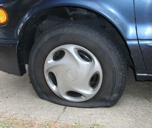 자동차 타이어에 못 등의 이물질이 박혀버리거나, 현저하게 마모된 타이어를 계속 사용함으로써 타이어의 공기가 빠져버리는 현상을 펑크라고 합니다.
